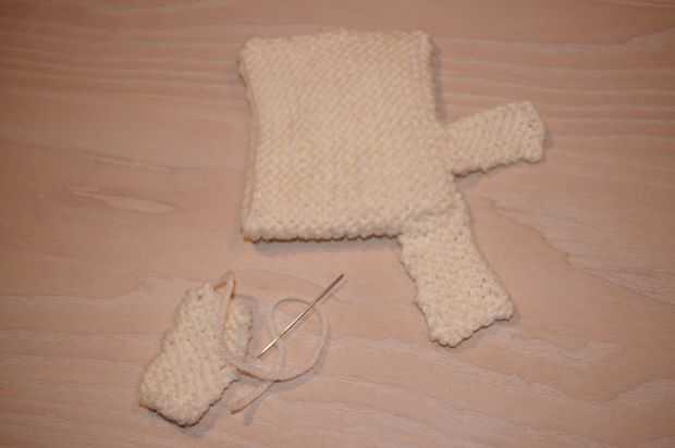 Entonces cosida en el 1 brazo y 2 piernas, aún dejando a un lado del cuerpo abierto para rellenar.