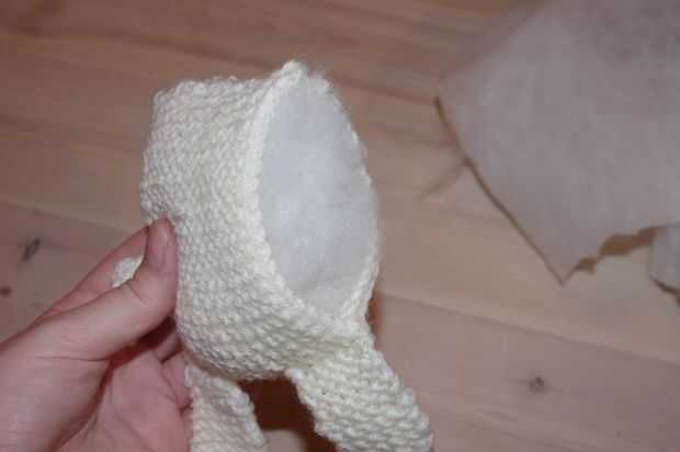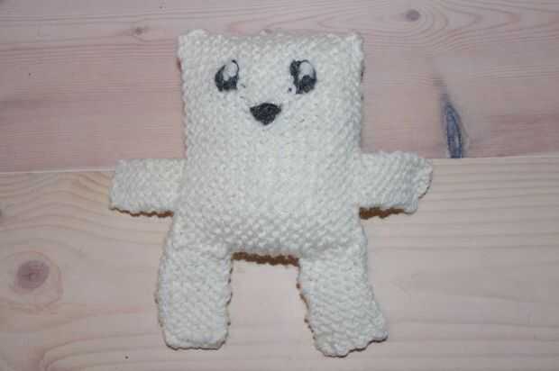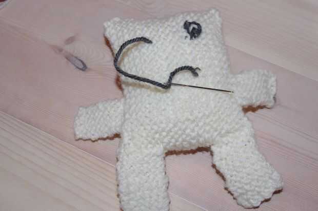 Rellena el oso de la cara con algodón, y luego cosió el lado junto y el segundo brazo en.