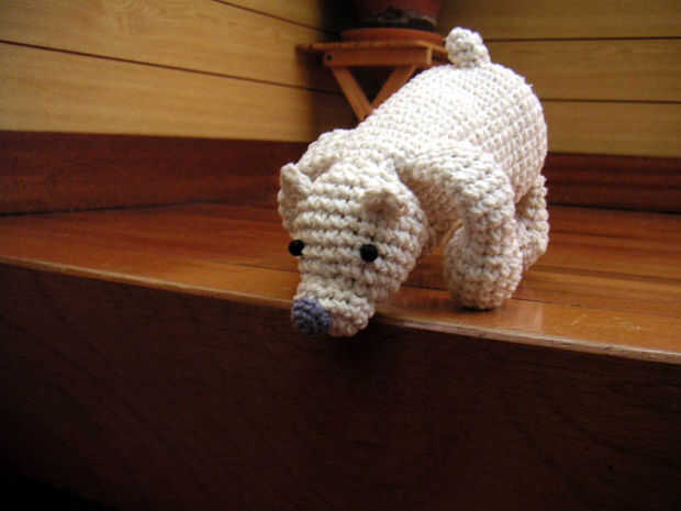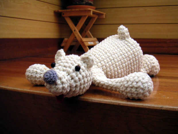 Hace poco tuve un nuevo primo, y yo quería hacer algo lindo para baby shower.Esto es lo que se me ocurrió: un minúsculo punto oso polar!Es fácil de hacer y sólo requiere algunas herramientas y habilidades básicas para hacer punto. Sólo me tomó un par