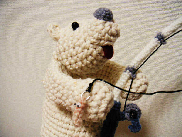 I punto un oso polar y mostró a mi uno de los amigos. Entonces preguntó "¿este oso ir a pescar?" y esto me dio una inspiración para hacer su caña de pescar y peces.