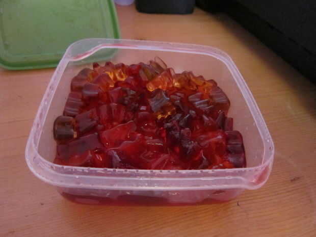 ¿Recuerde en el ultimo paso que dijo que podríamos hacer sin el jugo? Bueno, resulta que los gummis eran mucho más potentes de lo que pensaba! Probaban bastante bien, pero sería un poco fuertes para algunos otros que me imagino, por lo que recomiendo darles una prueba de gusto después de un tiempo para ver si desea agregar algún jugo a ellos.