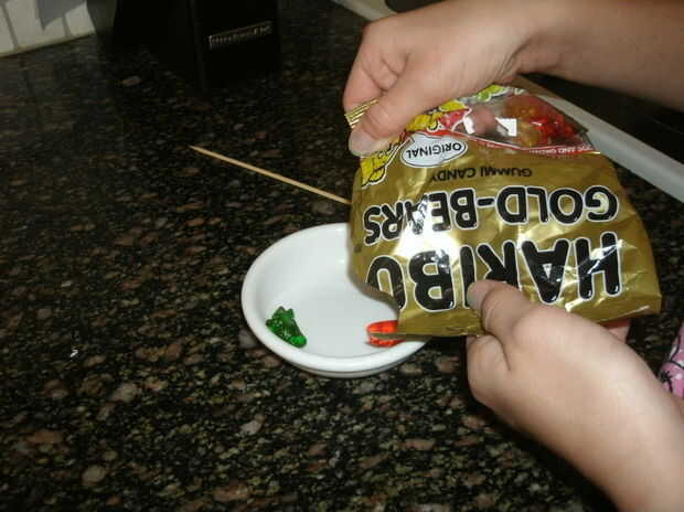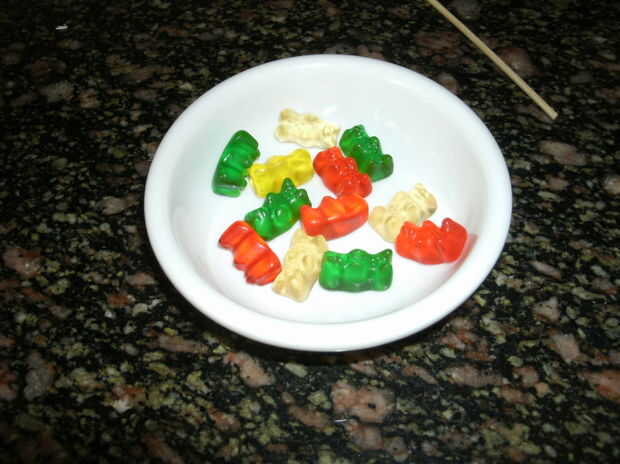 Pour sobre osos Gummy 12 o así en el plato pequeño.