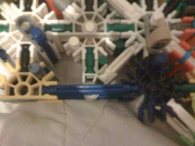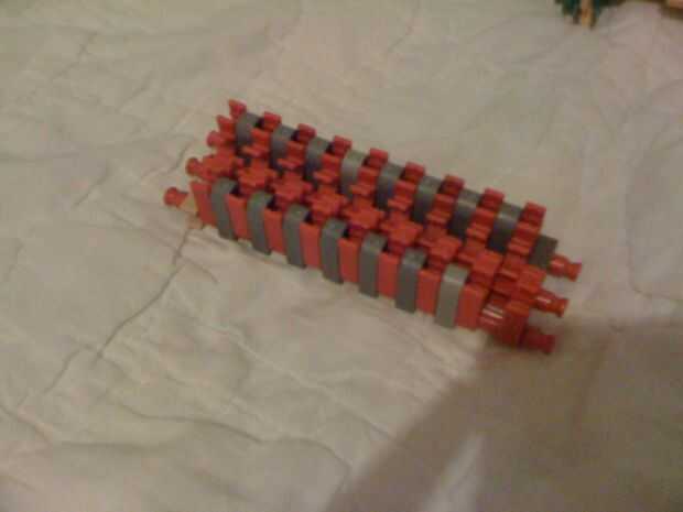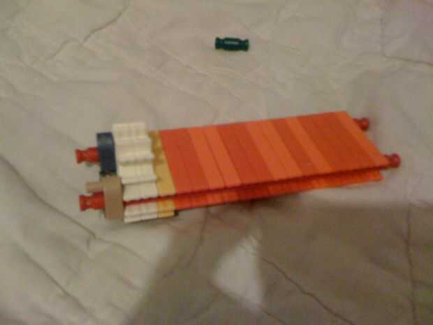 1 - reunir las 2 secciones y 2 barras azules y 6 barras verdes