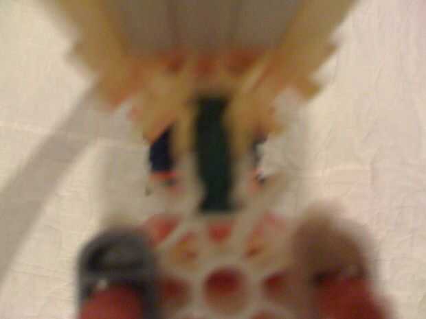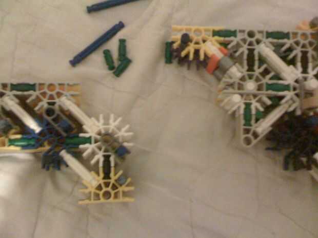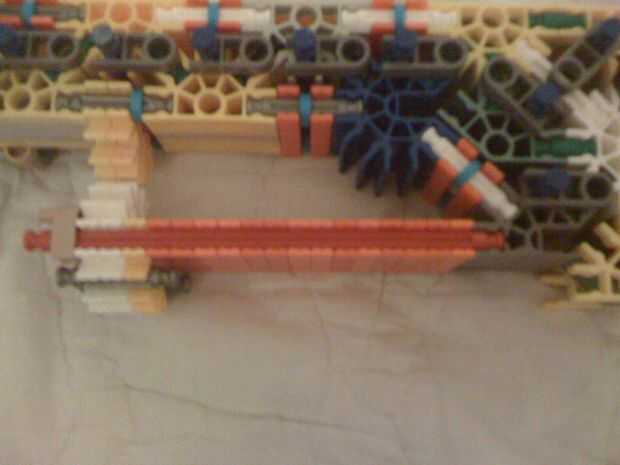2 - fijar la acción y el barril junto e inserte las barras verdes 6.