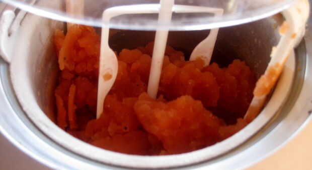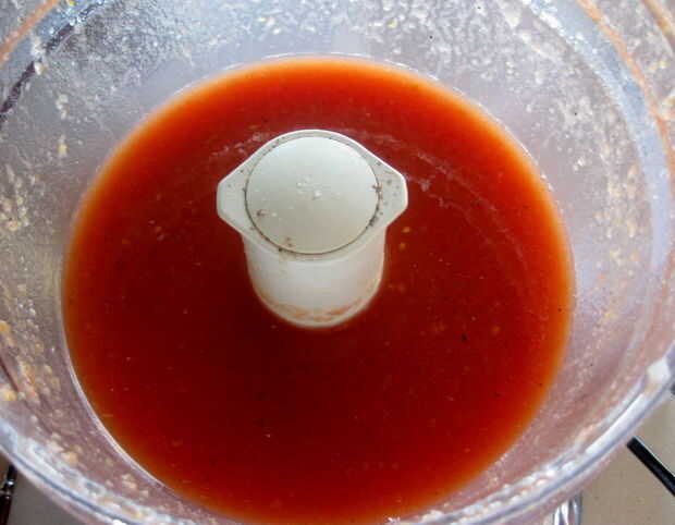 Lo bueno de esta receta es que si no estás en picante, puedes sustituir los tomates habanero con una lata de tomates en cuadritos regulares y todavía experimentar la maravilla! También, si no tienes una heladora, puede utilizar la misma receta pero congelar la mezcla Bloody Mary en una fuente para horno y raspar como si estás haciendo un granizado. Sólo tardará mucho más tiempo.