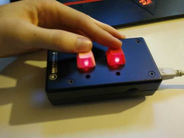 Tomé la caja y corte dos agujeros para los botones en el centro de la caja. Hice los agujeros más pequeños que los botones y presentó el orificio para fijar perfectamente.