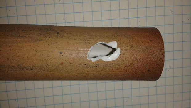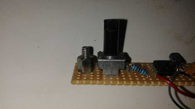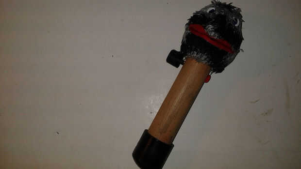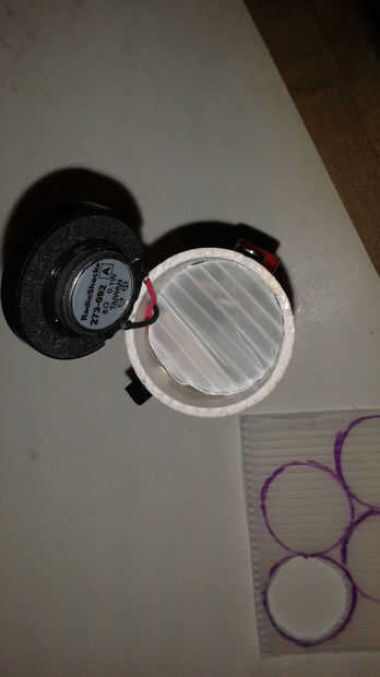 I medido y había marcado la ubicación de componentes de PVC y luego perforar los agujeros a la medida. He perforado los agujeros de montaje en el perfboard y utiliza hardware reciclado para montar los dos tableros con la olla y el pulsador en el PVC. Usé algunos reciclado curroplast cortar para caber el interior del PVC como aislante de sonido entre el altavoz y el mango. Quiero que el sonido salga de la boca, no los agujeros para la olla y pulsar el botón. Grabó el altavoz en su sitio y poner la cabeza en el mango.