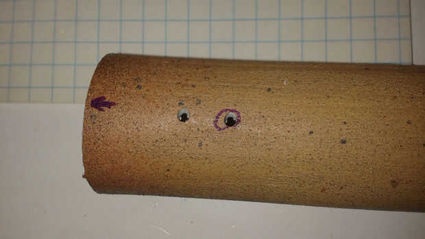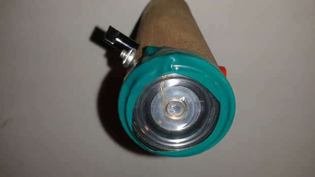 He instalado una batería y añade una tapa negra para mantenerla en. También he añadido algunos labios hechos de cinta roja más definición a la boca...