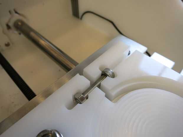 Lugar en el M4 x 20mm tornillo de cabeza hueca con una arandela y una tuerca hexagonal en la ranura de la parte superior derecha de la plantilla.