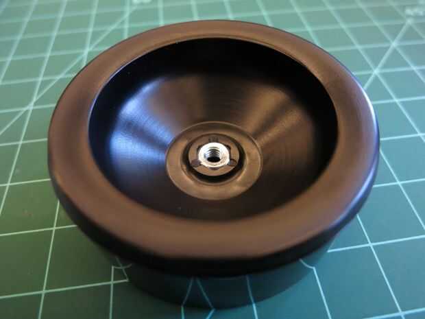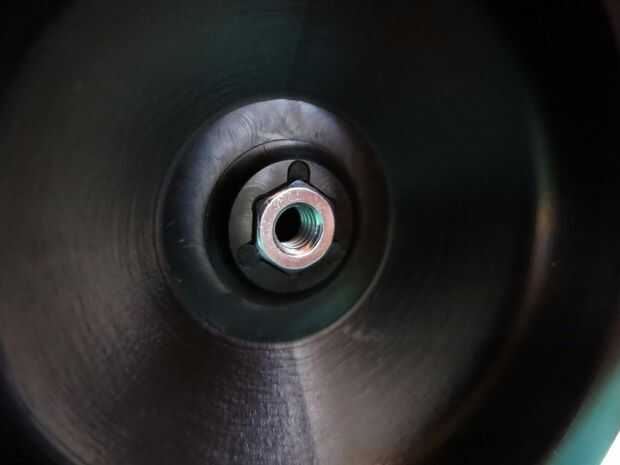 Estamos poniendo la tuerca en la mitad ahora para que después de moler la cara interna de lo yoyo, podemos rosca en el eje a tirar el yoyo de la plantilla.
