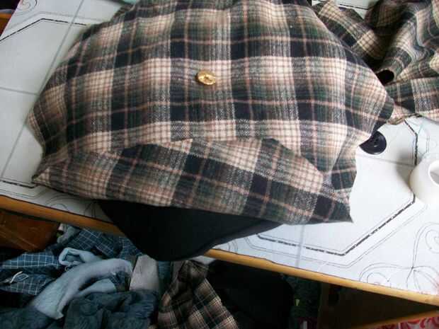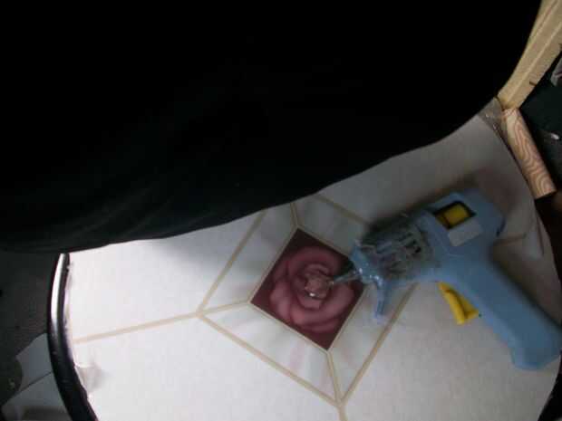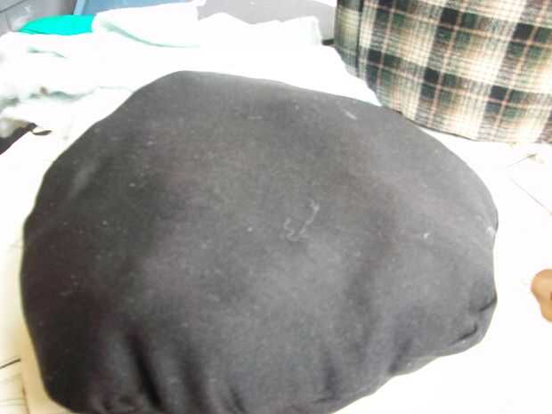 máquina puntada ellos juntos dejando una pequeña abertura. Gire a la derecha hacia fuera. Cosas con el relleno de la almohada vieja. mano coser la abertura. Coloque el círculo de tela restantes encima de la almohada de círculo que acaba de hacer. Coser un botón a través de la almohada y círculo de tela tire el pegamento caliente apretado del hilo el círculo de tela a la parte inferior del círculo de baldosas grandes.