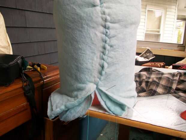 Con una puntada de mano hilo y aguja de que los bordes bateo juntos, asegúrese tomar ambas capas de bateo en la costura.