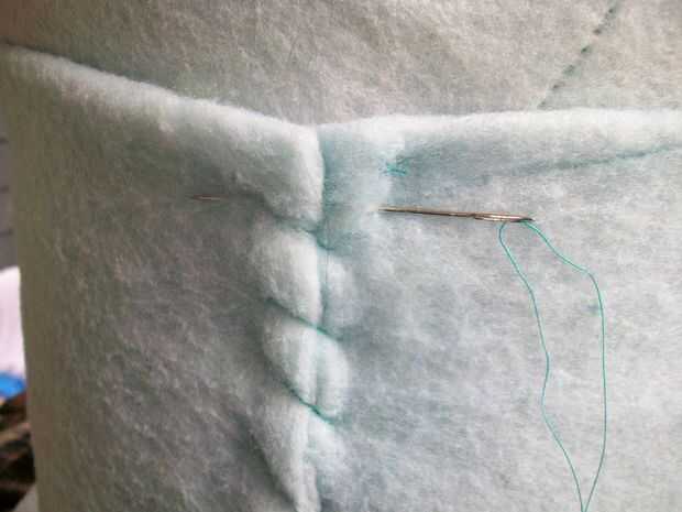 Envuelva la pieza 3 de bateo por debajo de la puntada de borde y la mano en su lugar.