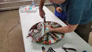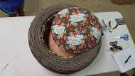 Después Esponjar por el relleno, coloque la tapa en la parte superior y doblar a la tela para grapa alrededor de cerca de 1-3 pulgadas del borde. Recoger el material sobrante de la torcedura para que el relleno es seguro y grapa más hasta que los bordes estén completamente cerrados.