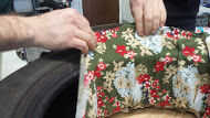 Consejo útil: sustitución de pegamento caliente con las grapas permite mejor sujeción de la tela.