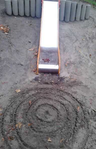 Caminaba a lo largo de un patio al aire libre para niños con algunos toboganes.