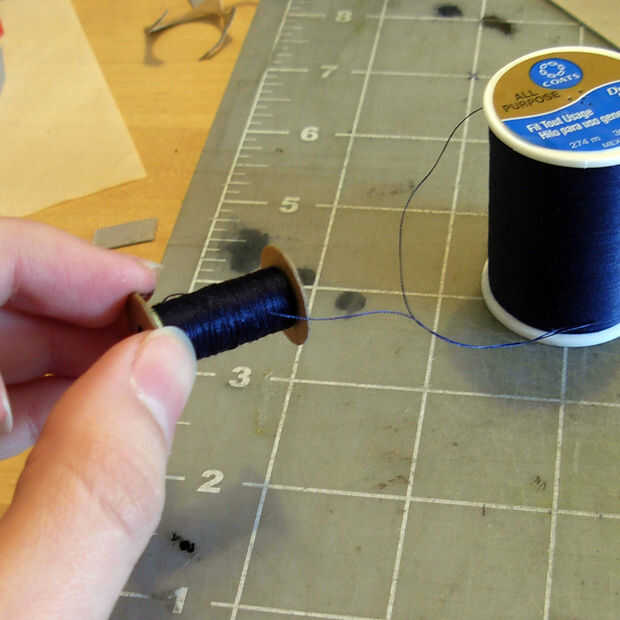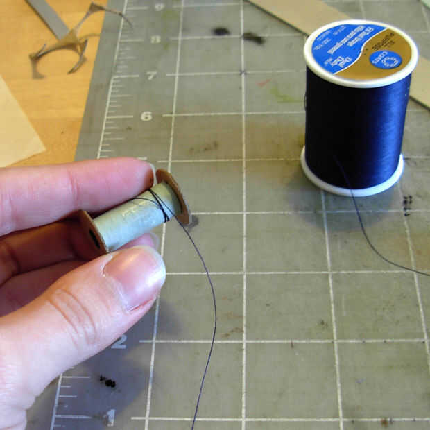 Para este paso necesitarás tu carrete recién hecha e hilo de rosca.