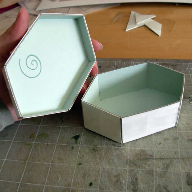 Cuidadosamente doble las aletas de la ficha de las piezas de la caja de corte y anotó (Foto 2). Debe doblar fácilmente a lo largo de las líneas anotadas. Usted debe ser capaz de ver el formulario en este momento (Foto 3). También puede comprobar para ver si alguno de tus pestañas es un poco demasiado grande y recortarlo en consecuencia para que su caja tenga un borde incluso.