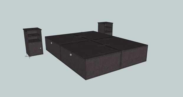 ACTUALIZACIÓN: Lamentablemente, mi media naranja decidió que quería actualizar nuestra suite de dormitorio y hemos decidido que nuestros muebles actual pasará a la sala de repuesto. Ni que decir, no más casas para construir. Todavía pondré algunos archivos de Sketchup y jpg aquí si alguien estaría interesado en la construcción de esta cama de la caja.