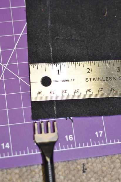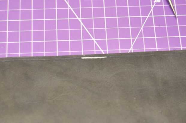 Surco superior e inferior de la piel (resalté donde la ranura fue en la segunda foto en caso que la ranura era difícil de ver), no hice ningún otro ranurado como superior e inferior se van a coser y quería mostrar la calidad de la piel al mismo tiempo no bulto innecesario al proyecto.