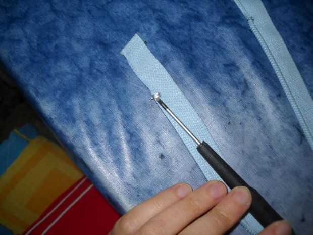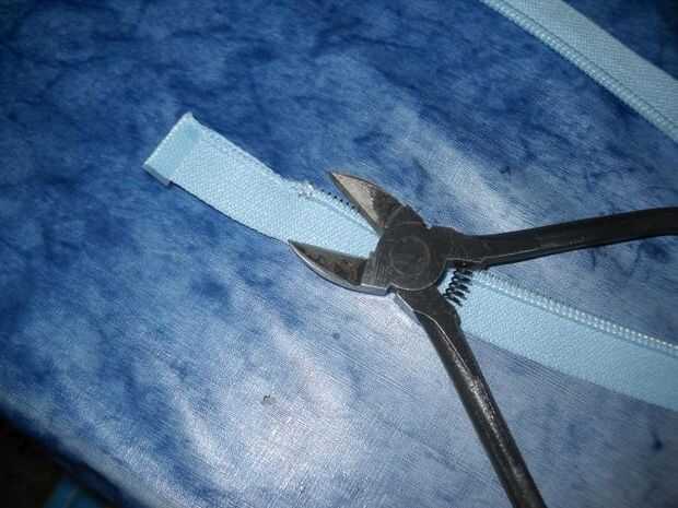 Con los alicates, tijeras, destornillador o cualquier cosa que crees que es buena, quiten los tapones poco en el lado abierto de la cremallera. Este pequeño pedazo de metal tiene algunos dientes que mantienen el tapón en su lugar. El truco es utilizar para poner el tope hacia atrás donde usted lo necesita.