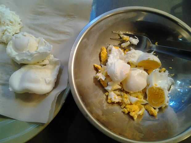 -Tomar todos los huevos fuera del agua y colocar en el tren placa forrado con papel encerado.