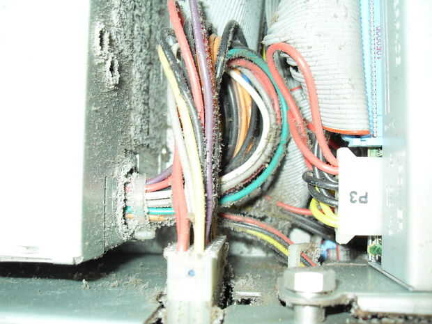 Los cables que salen de la fuente de alimentación tienen tapones de plástico blanco en los extremos de los llamados conectores molex. Debe haber varios de ellos al conectarse el disco duro, unidad de CD, floppy buceo, Motherboard, Tarjeta madre, ventilador, etc. (Foto 3). Usted querrá desconectar todos estos. Asegúrese de que tener a todos ellos y que está tiradas libres de todos los soportes y cables en el interior (foto 4).