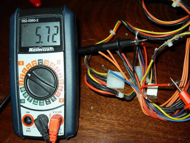 Ahora establece el multímetro en voltios DC. Mantenga la sonda negra tocando el alambre negro y toque la punta de prueba roja de cada color de cable. La lectura que se obtiene de cada color es la tensión de ese color en particular. Debe leer como sigue: