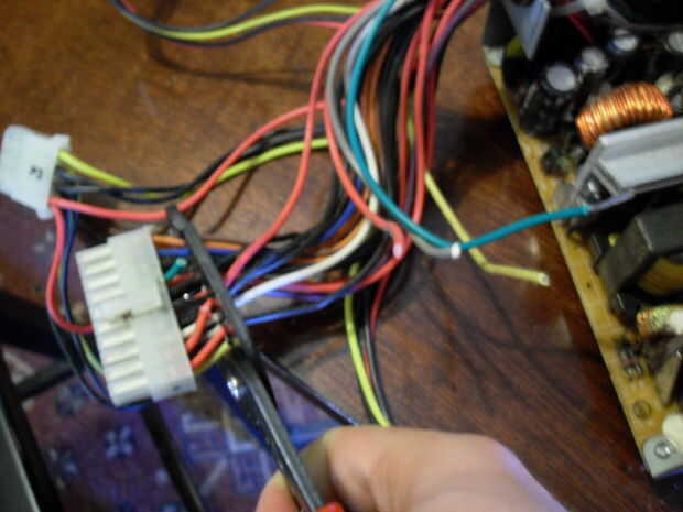 Usted debe comenzar utilizando el cortador de alambre para cortar todos los cables de los conectores molex. Cortar lo más cerca del conector como sea posible ya que puede que desee tener los cables mientras possible(Photo 1). También debe quitar los lazos zip que están empaquetando juntos. Más tarde, puede hacer sus propios paquetes de cada color del cable.