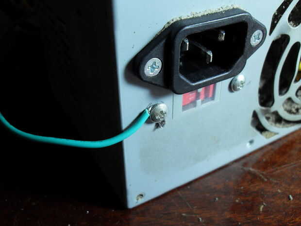 Ahora vamos a arrancar esta cosa. Debe obtener el cable de alimentación y enchufe en la parte posterior de la fuente de alimentación. Enchufe el otro extremo en un tomacorriente de pared. Si hay un interruptor en la parte posterior de la fuente de alimentación mueva a la posición de encendido. Luego debe tomar el cable verde y toque el extremo desnudo fuera de la carcasa de metal de la fuente de alimentación. Debe primavera a la vida con el "donde" indicadoras del ventilador. Para mantener la alimentación de corriente mientras que su trabajo debe fijar el cable a la caja con uno de los tornillos de montaje (Foto 2). Todos los cables están vivas ahora, así que no dejes que toquen! Si lo hacen la fuente de alimentación se apagará y usted tendrá que desconecte y vuelva a conectarlo.