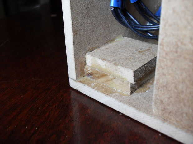 Una vez que el lado de la caja no se pega en el. En cambio, son pequeños bloques pegados en cada esquina para mantenerlo lugar. El lado se ajusta perfectamente en el resto del recinto para que fijaciones adicionales como tornillos o cierres no son necesarios para mantener en su lugar. Esto permite acceso al interior del recinto (Foto 3).