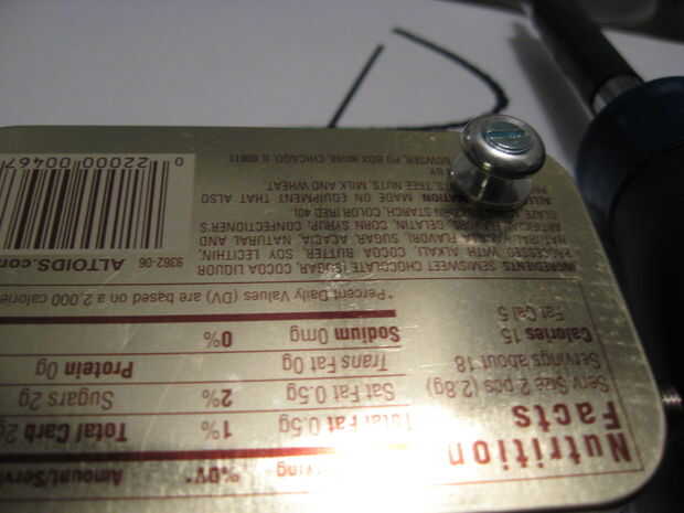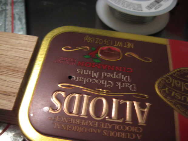Haga un orificio en la lata para la toma de audio y montarlo. Tuve que cortar un poco la tapa para que ajuste.