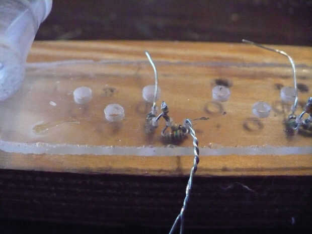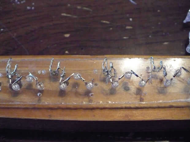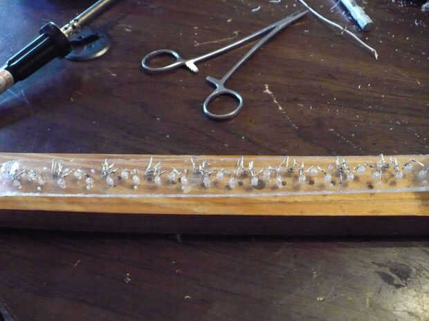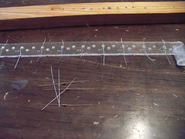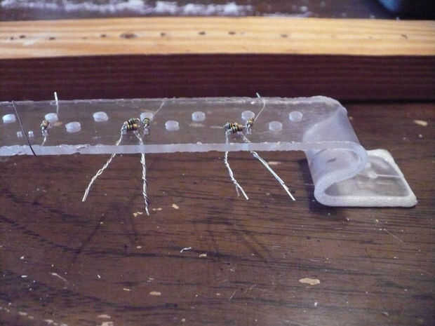 A continuación dobladas las puntas juntas y soldadas. Cuidado con este paso, usted fácilmente puede sobrecalentar los LEDs.