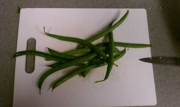 judías verdes frescas, tengo demasiados y comimos habas verdes para absolutamente un rato. Una regla del pulgar es tocar el dedo índice al pulgar y la cantidad de judías verdes que caben en ese espacio veces 2 por persona. Esto me funciona pero si tienes realmente enorme mano o manos muy pequeñas puede ser que necesite algún ajuste.