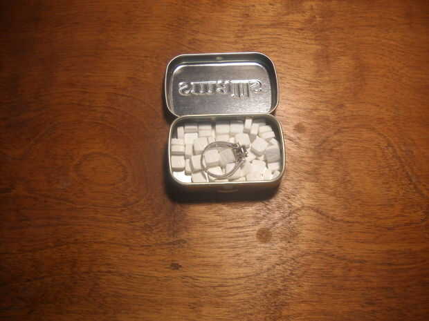 Esto es sólo una forma más de ocultar el anillo y os dejo la propuesta depende de usted. Tomar un envase de Altoids, un mini funciona bien. Ábralo, coloque el anillo dentro. Usted podría también recortar espuma que encajan perfectamente para mantener el anillo. Pregúntale si quiere una casa de la moneda tal vez o simplemente mantenerse a salvo de ladrones que no tomaría tus mentas. Os dejo los detalles y fantasiosas nociones depende de usted.