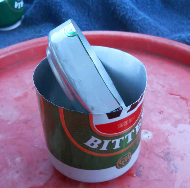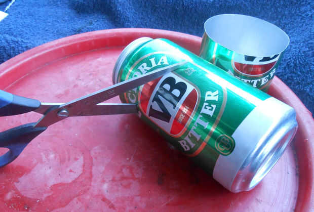 Otra vez uso las tijeras para cortar al segundo pueden, esto ajustará la altura de la estufa.