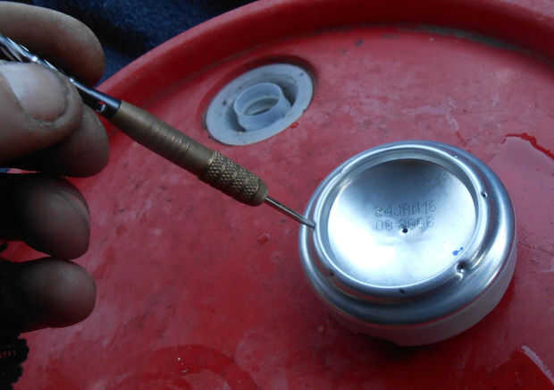 Este es un muy simple leña, ideal para hervir como una olla de aguaTodo lo que necesitas esun destornillador pequeño(cerveza)Paso 1: Lindos agujeros en una lata Utilice un destornillador pequeño para cortar agujeros en la lata como se ve en las fotos