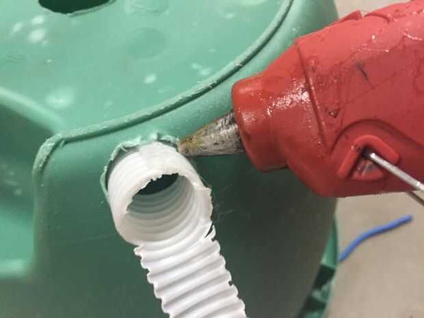 Tome el extremo de la tubería que es 1" de largo y exprímala para que encaje en el agujero que perforó en el paso #1. Una vez en, pegamento caliente en su lugar. Hacer esto para todos los dedos.