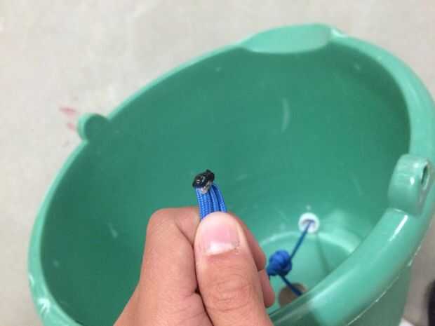 Pellizque los extremos opuestos de la paracord juntos y fundirse con el encendedor. Puede que desee utilizar una brida de plástico para unir los extremos. Amarrar las piezas de paracord se unió ahora en sí mismo y colocar el nudo para ser unos 5" debajo de la punta derretida. ¡ Listo!