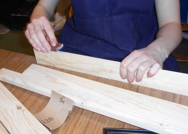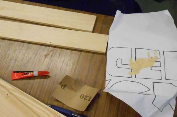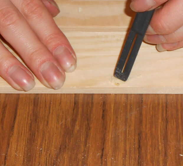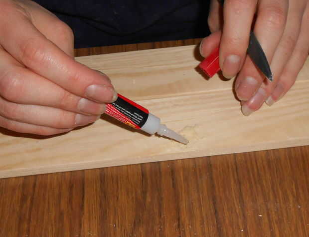 Porque estas cosas solían ser zócalo antiguo, está lleno de agujeros de clavo. Corte alrededor de lo peor, pero no podía evitarlos todos. El tubo de relleno de madera en el ' espacio estaba todo seco hacia fuera e inútil, y no queríamos esperar hasta podríamos llegar a la tienda a comprar cosas nuevas. Pegamento + polvo de madera hace un sustituto bastante bueno si sabes usarlo, además de que se seque rápido.