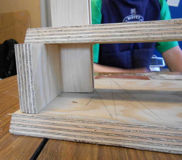 Una complicación excesiva de ligero diseño tenemos que incluir, ya que la base superior e inferior son los más largos que posiblemente podríamos obtener fuera de la placa de madera contrachapada se utilizó, sin embargo todavía insuficiente para extender lo suficiente que los lados del marco no chocar contra las placas de extremo cuando todo esté montado.