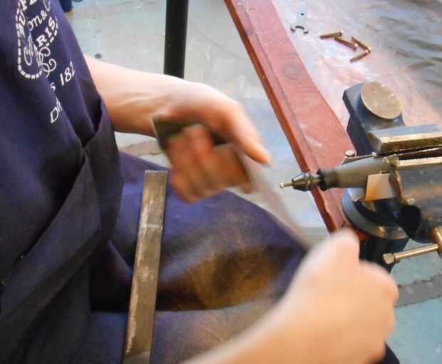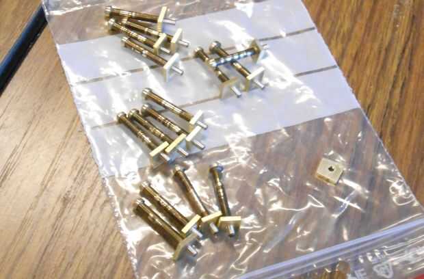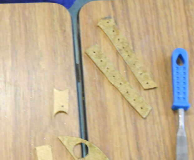 No pudimos encontrar ningún tornillo en latón, o al menos color de bronce, fueron lo suficientemente pequeños como para las placas en cualquiera de los herrajes y hobby tiendas alrededor de la ciudad, así que quimera cavado a través de sus partes contenedores en el trabajo y dio vuelta encima de algunos tornillos de la bisagra de latón antiguo, pequeño. Las cabezas eran grandes, pero que era un problema que podría resolverse fácilmente con una Dremel y algunos archivos.