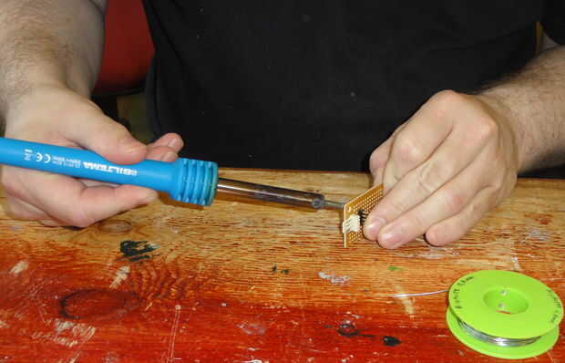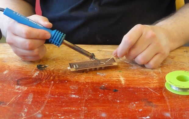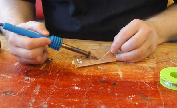 - Algunos medios de que los humos de soldaduras lejos de su cara. (Humos de extractor, ventilador, ventana abierta, compañeros hacker agitando una hoja de cartulina, etc.)