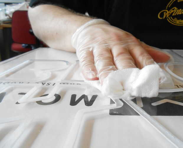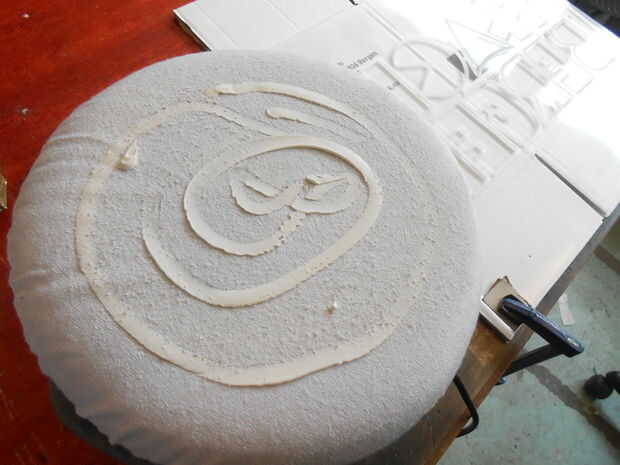 Después de lijar vino pulir, hacer todo liso y claro así que la luz se refracta sólo en las áreas grabadas.