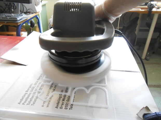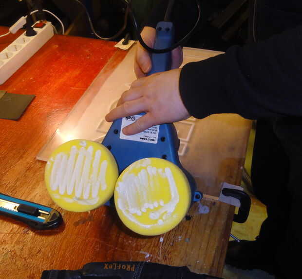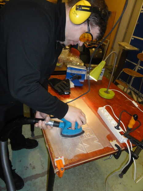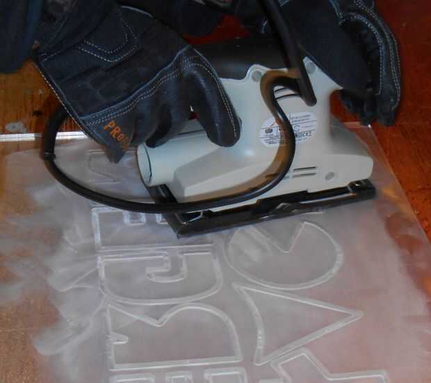 Tiempo para obtener el último de los residuos de pegamento del acrílico y arena/buff los arañazos y golpes. La más pequeña lijadora de Palma sólo tomó ésos hojas Velcro y extraños hechos específicamente para él, y los que sólo iban a grano 240, así que utilizamos otra lijadora de Palma los granos más finos, a ~ 2500 lija.