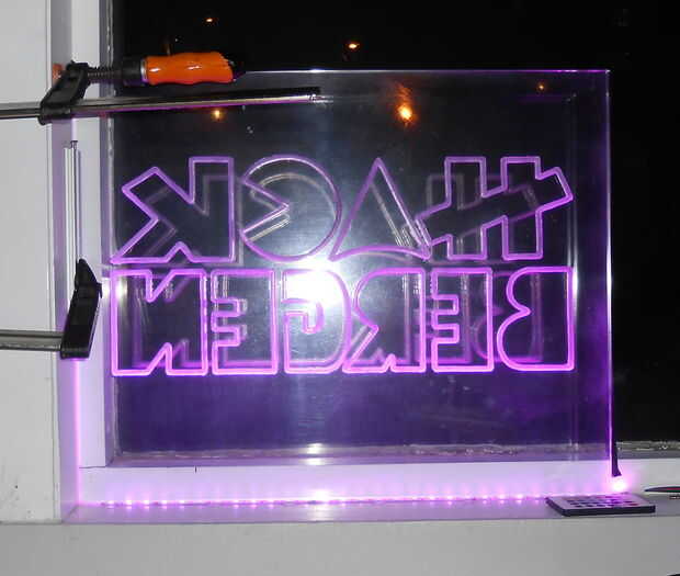 Poner la hoja de acrílico en lugar seguro, especialmente si es como la nuestra y ya no tiene cualquier protector que cubre en él. Nosotros ponemos en la ventana con LEDs por debajo de ella. Tal vez no el lugar más seguro, pero eran demasiado impacientes por toda señal de hacerse antes de que nos lo mostró.