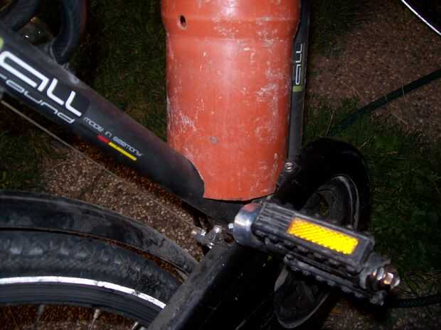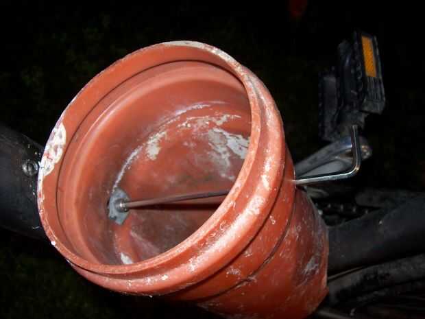 A continuación, quería que la tubería a sentarse firmemente sobre la bicicleta, que se logró a través de dos aberturas a través de un taladro circular, así como un agujero para la llave allen (hexagonal) apretar el tornillo.