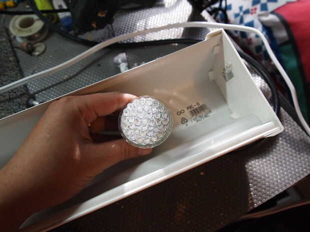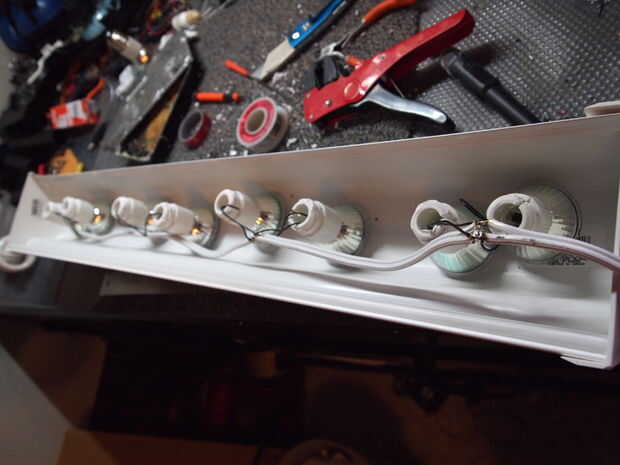 Mientras que los bulbos se alinean uniformemente, quitar aislamiento en el cable donde están los bulbos.