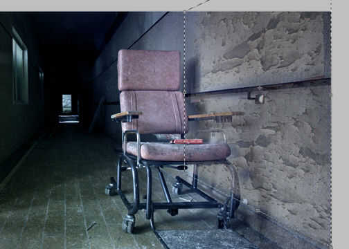 A continuación añadir alguna sangre y decaimiento. Encontré una textura de pintura de peeling para cubrir la pared y coloca en una capa nueva y establezca el modo de mezcla a luz suave y la opacidad a 65%. Golpe Cmd + T (Cntrl + T en un PC) para activar la herramienta Transformación libre. Si mantiene pulsado Shift + Cmd puede arrastrar las esquinas de la capa independientemente para ajustar el punto de vista de la imagen de textura.