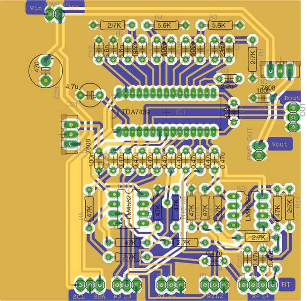 - 3 cabeceras de las pastillas denominadas SCL / SDA. Este es el bus I2C para la TDA7439